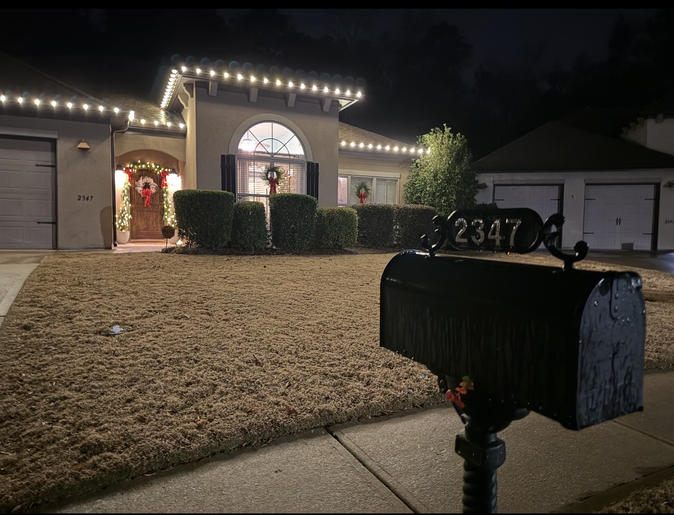 For this project in Auburn, Alabama, our team completed a standard residential Christmas light installation designed to give the home a clean, classic holiday look. We carefully installed roofline lighting and ensured everything was evenly spaced, secure, and professionally finished so the homeowners could enjoy the season without worrying about ladders or electrical setup.