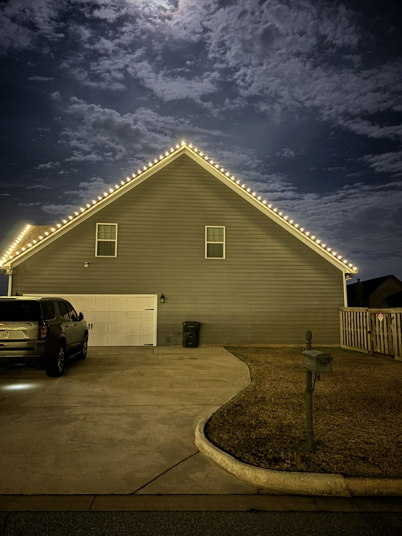 All Christmas lights were professionally supplied, custom-fit, and installed to enhance the home’s architectural features while maintaining symmetry and long-term durability.